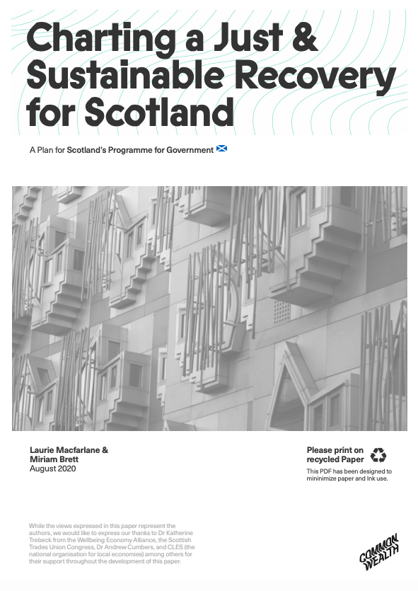 I have a new paper out today, co-authored by Miriam Brett, called ‘Charting a Just and Sustainable Recovery for Scotland: A Plan for Scotland’s Programme for Government’. The paper has been published by the Common Wealth think tank.
